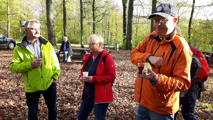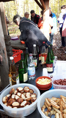 Wie in den vergangenen Jahres üblich, durfte natürlich eine Raststation in der Mitte der Wanderstrecke nicht fehlen. Renate und Erwin Seyfrieds hatten an einem lauschigen Platz mitten im Wald Gebäck und diverse Getränke hingerichtet, so dass sich alle für die zweite Hälfte der Wanderung stärken konnten.
