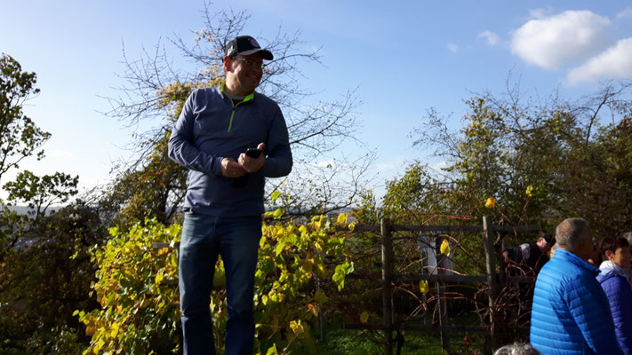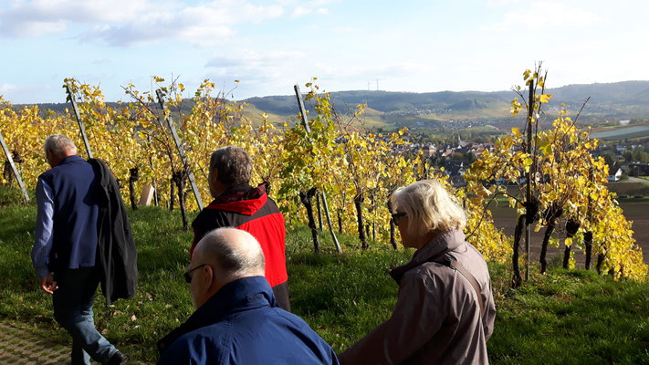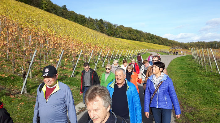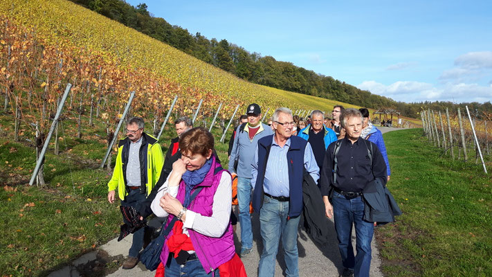 Ausgangspunkt der Wanderung durch bunte Weinberge war in diesem Jahr Affaltrach. Der fast 12 Kilometer weite Wege führte vorbei an bekannten Weinlagen wie dem Salzberg, von denen man immer wieder weite Blicke auf das Weinsberger Tal, die Löwensteiner Berge oder das Heilbronner Neckarbecken genießen konnte. Interessant für die Wanderer war es, etwas über die interessante und abwechslungsreiche Geschichte des jüdischen Friedhofs in Affaltrach zu erfahren, über die Wanderführer und Vorstand Roland Schweizer berichtete.
