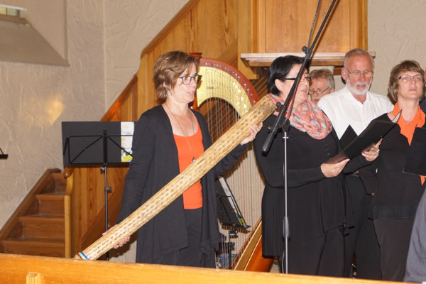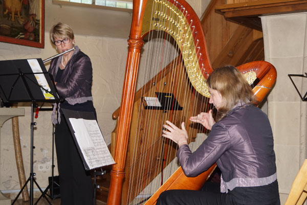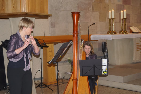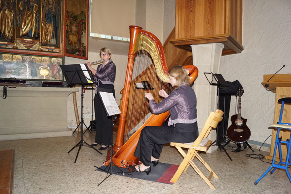 Ein besonderes musikalisches Klangerlebnis bieten die beiden Musikerinnen Anke Palmer (Flöte) und Angela Holzschuh (Harfe).